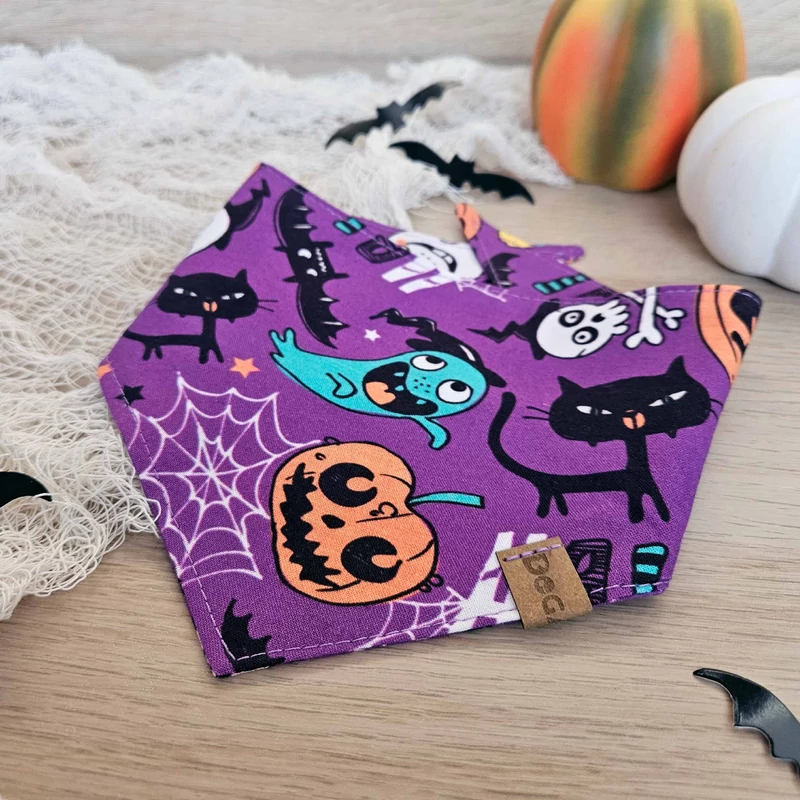 100% pamutból készült, limitált kiadású halloweeni kutya kendő a félelmetesen jó halloweeni kalandokhoz.